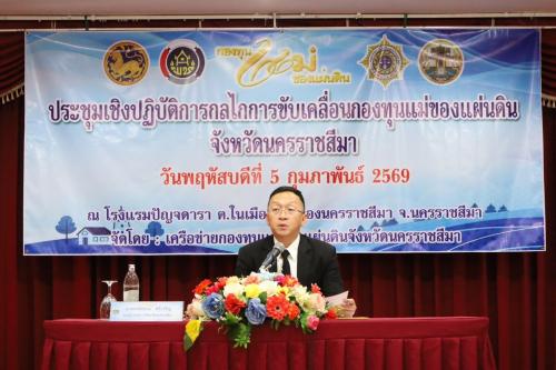 นายอนุพงศ์ สุขสมนิตย์ ผู้ว่าราชการจังหวัดนครราชสีมา มอบหมายให้ นายคณัสชนม์ ศรีเจริญ รองผู้ว่าราชการจังหวัดนครราชสีมา เป็นประธานในการประชุมนโยบายขับเคลื่อนการดำเนินงานการป้องกันและแก้ไขปัญหายาเสพติดจังหวัดนครราชสีมา ประจำปี 2569 โดยมี นางกนกรัชต์ วงษ์กาฬสินธุ์ พัฒนาการจังหวัดนครราชสีมา กล่าวรายงานการประชุม ทั้งนี้ได้มีการเน้นย้ำภารกิจสำคัญในการสร้างความเข้มแข็งให้แก่หมู่บ้านและชุมชน โดยใช้กลไก "กองทุนแม่ของแผ่นดิน"เพื่อเป็นรากฐานสำคัญในการป้องกันปัญหายาเสพติด และเป็นศูนย์กลางในการเฝ้าระวังและแก้ไขปัญหาด้วยพลังของชุมชน เข้าถึงครัวเรือนกลุ่มเป้าหมายที่เปราะบางเสี่ยงต่อการเข้าไปเกี่ยวข้องกับยาเสพติด เพื่อหาทางช่วยเหลือและพัฒนาคุณภาพชีวิตให้ดีขึ้น พร้อมทั้งเน้นย้ำให้เจ้าหน้าที่พัฒนาชุมชนทำงานเชิงรุกร่วมกับภาคีเครือข่ายในพื้นที่ สร้างภูมิคุ้มกันให้แก่เด็ก เยาวชน และครอบครัว นำไปสู่หมู่บ้าน/ชุมชนที่เข้มแข็งและยั่งยืนอย่างแท้จริงต่อไป