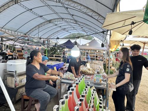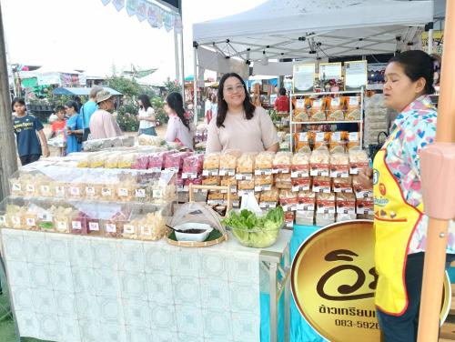 นางสาว ศิรินทร์ทิพย์ ยวนกระโทก พัฒนาการอำเภอวังน้ำเขียว พร้อมเจ้าหน้าที่พัฒนาชุมชนอำเภอวังน้ำเขียว ลงพื้นที่เยี่ยมชมและให้กำลังใจกลุ่มผู้ประกอบการ “ของดีวังน้ำเขียว” และผู้ประกอบการ OTOP ที่เข้าร่วมจำหน่ายสินค้า ภายในงาน เบญจมาศบานในม่านหมอก ครั้งที่ ๒๔ ณ บริเวณองค์การบริหารส่วนตำบลไทยสามัคคี อำเภอวังน้ำเขียว จังหวัดนครราชสีมา ภายในโซนจำหน่ายสินค้ามีผลิตภัณฑ์หลากหลาย อาทิ สินค้า OTOP ระดับ 3–5 ดาว ผลิตภัณฑ์แปรรูปทางการเกษตร สินค้าสัมมาชีพชุมชน ของฝาก ของที่ระลึก และผลผลิตสดจากเกษตรกรในพื้นที่ ซึ่งได้รับความสนใจจากนักท่องเที่ยวเป็นจำนวนมาก