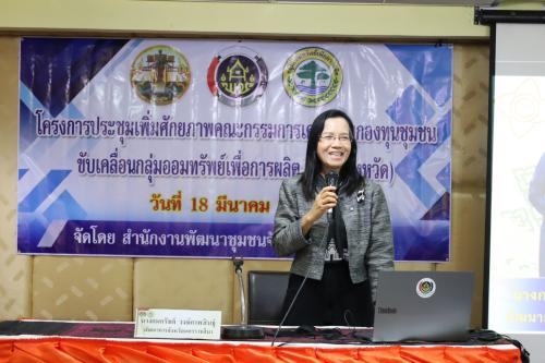 โดยมี นางกนกรัชต์ วงษ์กาฬสินธุ์ พัฒนาการจังหวัดนครราชสีมา กล่าวรายงานการจัดกิจกรรมในครั้งนี้ ในการประชุมครั้งนี้มุ่งเน้นการพัฒนาศักยภาพคณะกรรมการเครือข่ายฯ ในด้านการบริหารจัดการเงินทุน การสร้างวินัยทางการเงิน การส่งเสริมการออม และการขับเคลื่อนกลุ่มออมทรัพย์เพื่อการผลิตให้เป็นแหล่งทุนสำคัญของชุมชนในการสร้างอาชีพและพัฒนาคุณภาพชีวิตของประชาชน พร้อมทั้งเปิดเวทีแลกเปลี่ยนเรียนรู้ประสบการณ์ แนวทางการดำเนินงานที่ประสบความสำเร็จ และการแก้ไขปัญหาอุปสรรคในการบริหารกองทุน เพื่อให้เครือข่ายสามารถนำไปปรับใช้ในพื้นที่ได้อย่างเหมาะสมและเกิดผลสัมฤทธิ์อย่างเป็นรูปธรรม